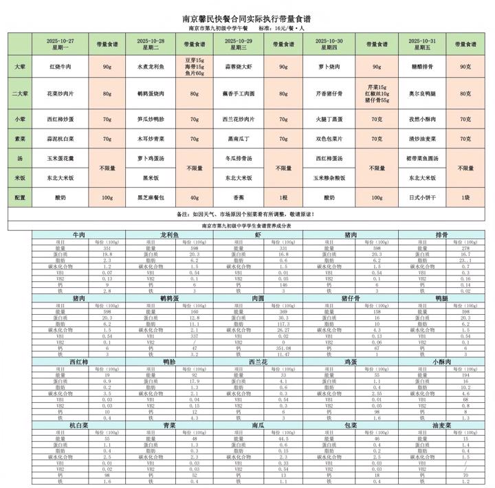 第九周食堂菜谱