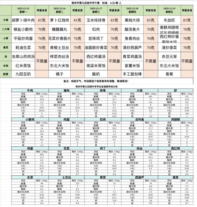 南京市第九初级中学2025-2026学年第一学期第16周行事历