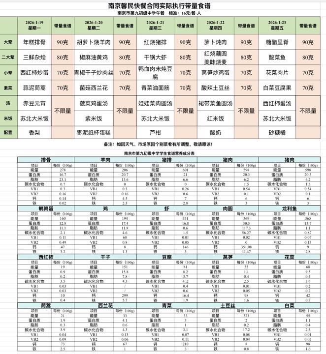 第二十一周食堂菜谱