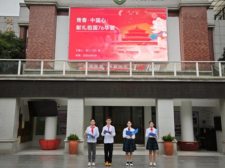 2025年9月29日上午,南京市第九初级中学分校区隆重举行“献礼新中国成立七十六周年华诞”主题晨会,全校师生共同参与,用庄重的仪式和饱满的热情,为祖国母亲献上诚挚的祝福。