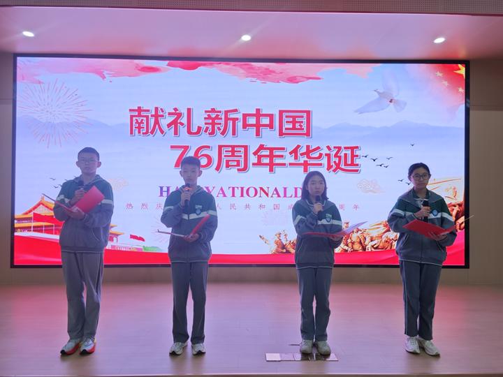 随后,初二12班的同学们进行了饱含深情的朗诵《以少年之心,贺祖国华诞》,以少年视角,讲述阅兵背后的历史记忆、家国情怀。