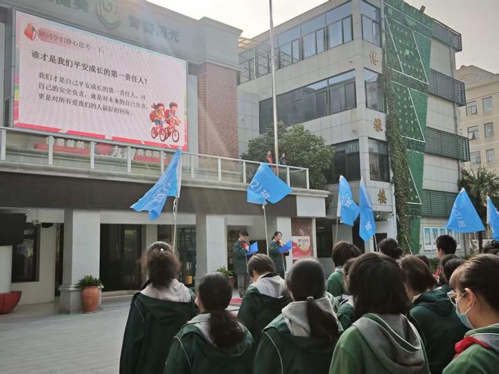 晨会伊始,一段展现国家对青少年安全守护的视频拉开序幕。画面中,从校园安防建设到社会安全保障的诸多举措,让同学们深刻感受到国家为少年儿童健康成长撑起的“安全保护伞”,也引发了大家对“安全责任”的深度思考。随后,主持人顺势引导提问:“在我们的成长路上,谁才是安全成长的第一责任人?”同学们踊跃发言、各抒己见,在思维的碰撞中,“自己才是自己安全的第一责任人”这一核心观点逐渐清晰,深深扎根在每位同学心中。