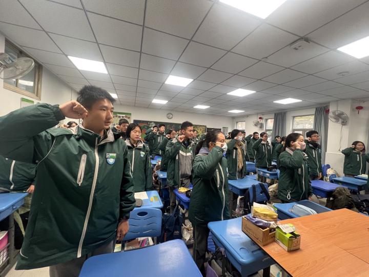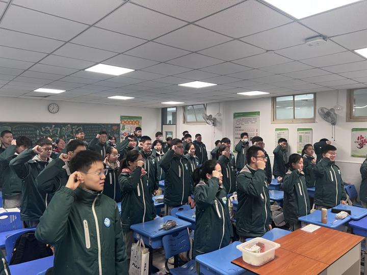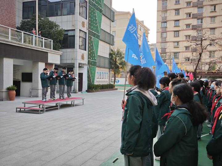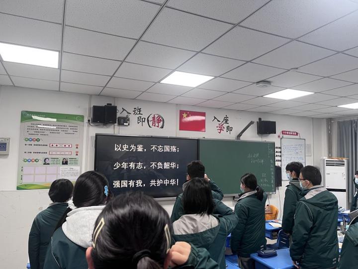 晨会高潮处,全体同学肃立,举起右拳,在主持人的带领下庄严宣誓:“以史为鉴,不忘国殇;少年有志,不负韶华;强国有我,共护中华!”嘹亮的誓言响彻校园,字字铿锵彰显着九初学子传承英烈精神、守护祖国发展的坚定决心。